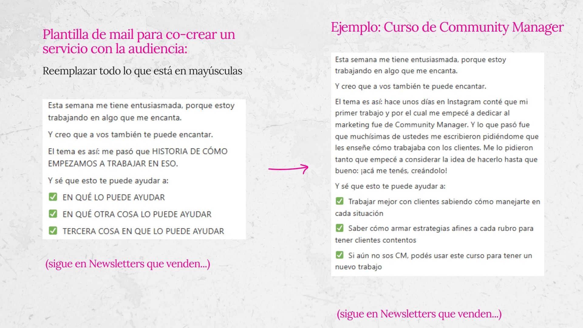 Las plantillas te ahorran tiempo, pero la clase estratégica te da la base para entender cómo funcionan los newsletters que venden y después crear los tuyos propios si querés.